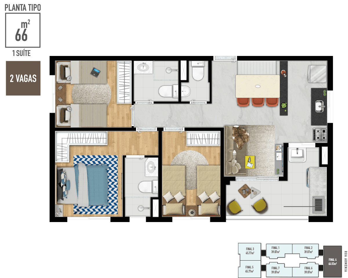 2 e 3 Dorms.