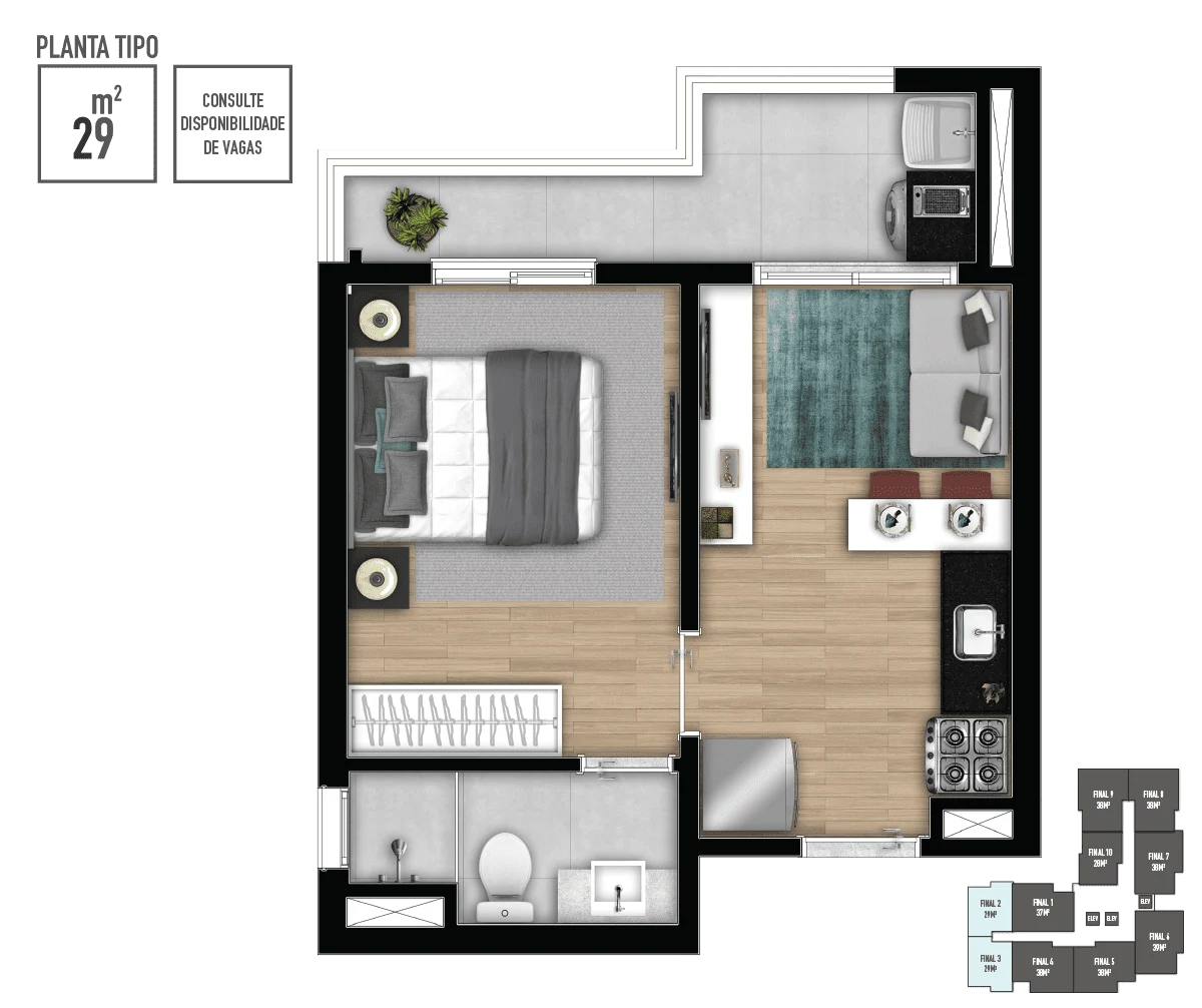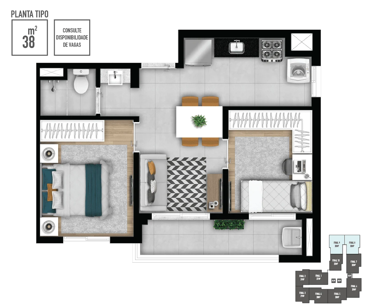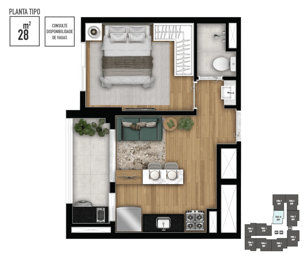 • Metragens: 28 a 39m²