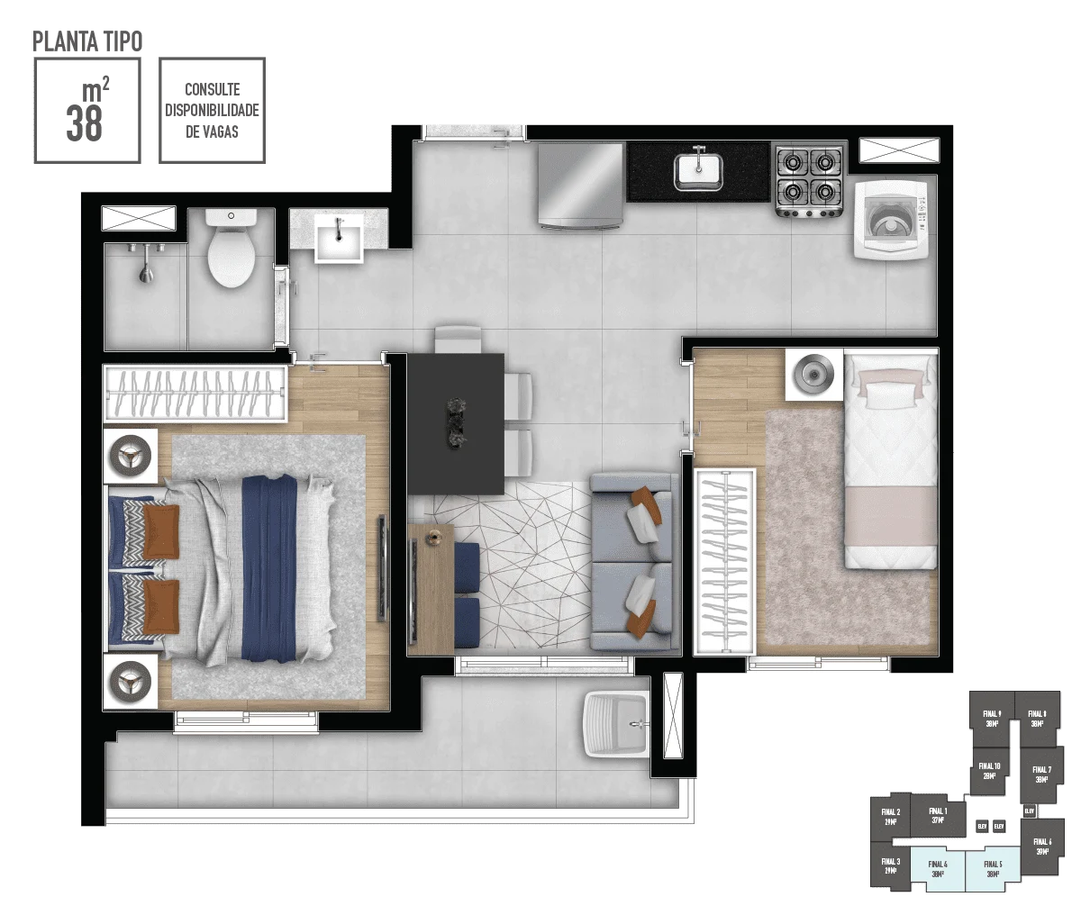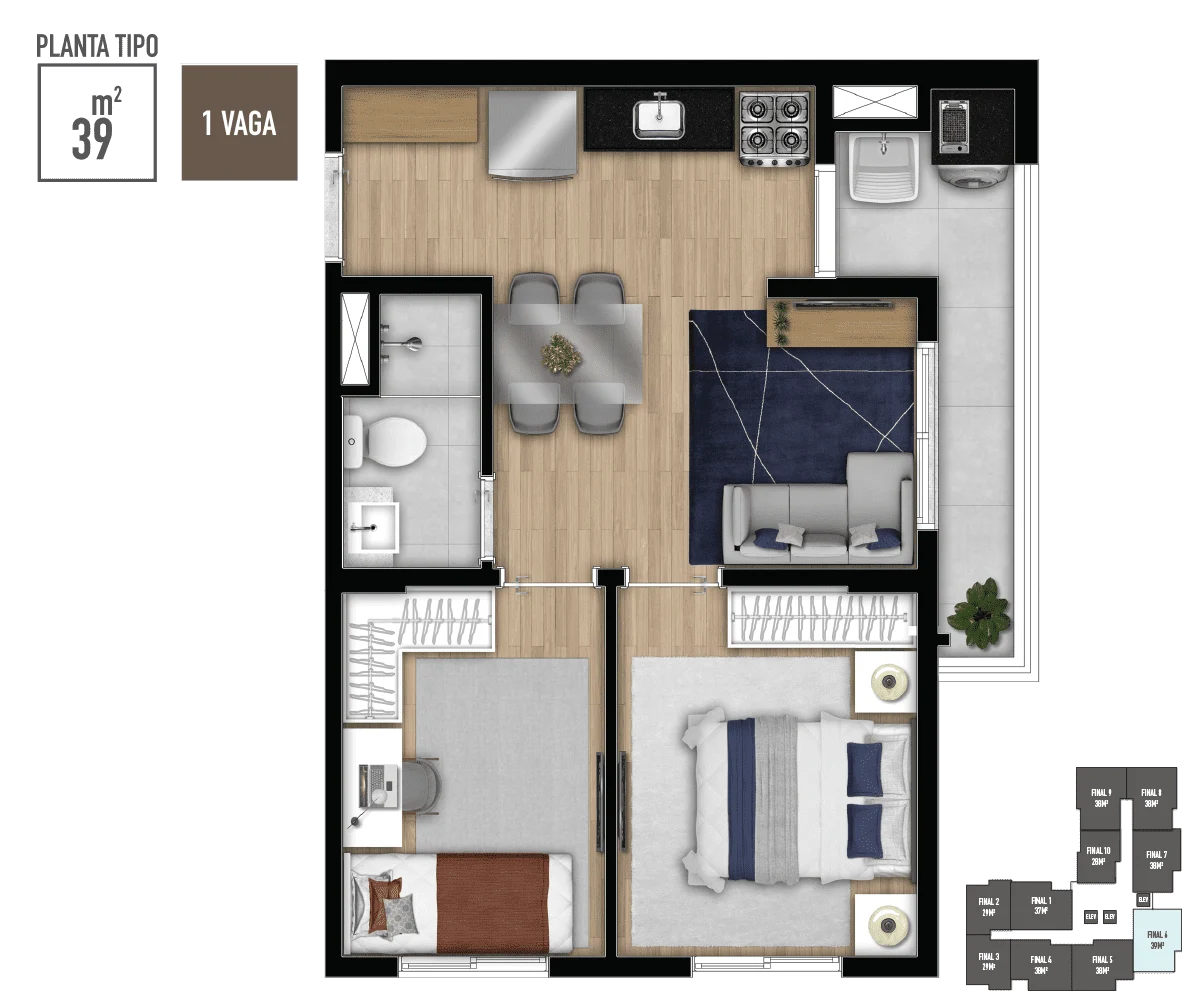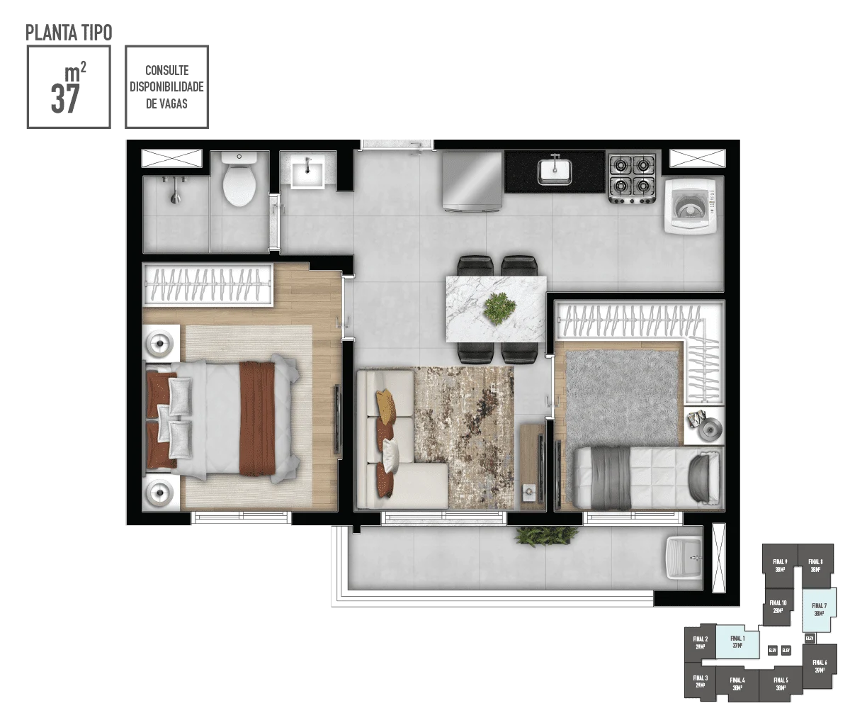 • Metragens: 28 a 39m²