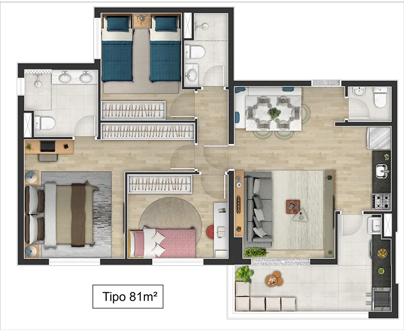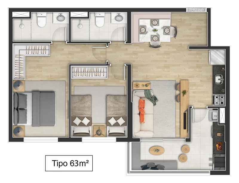 • Metragens: 63 a 81m²