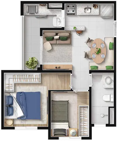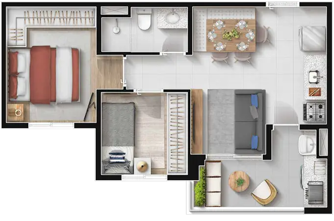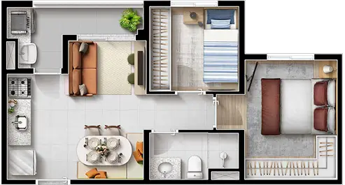 • Dormitórios: 1 e 2 DORMS